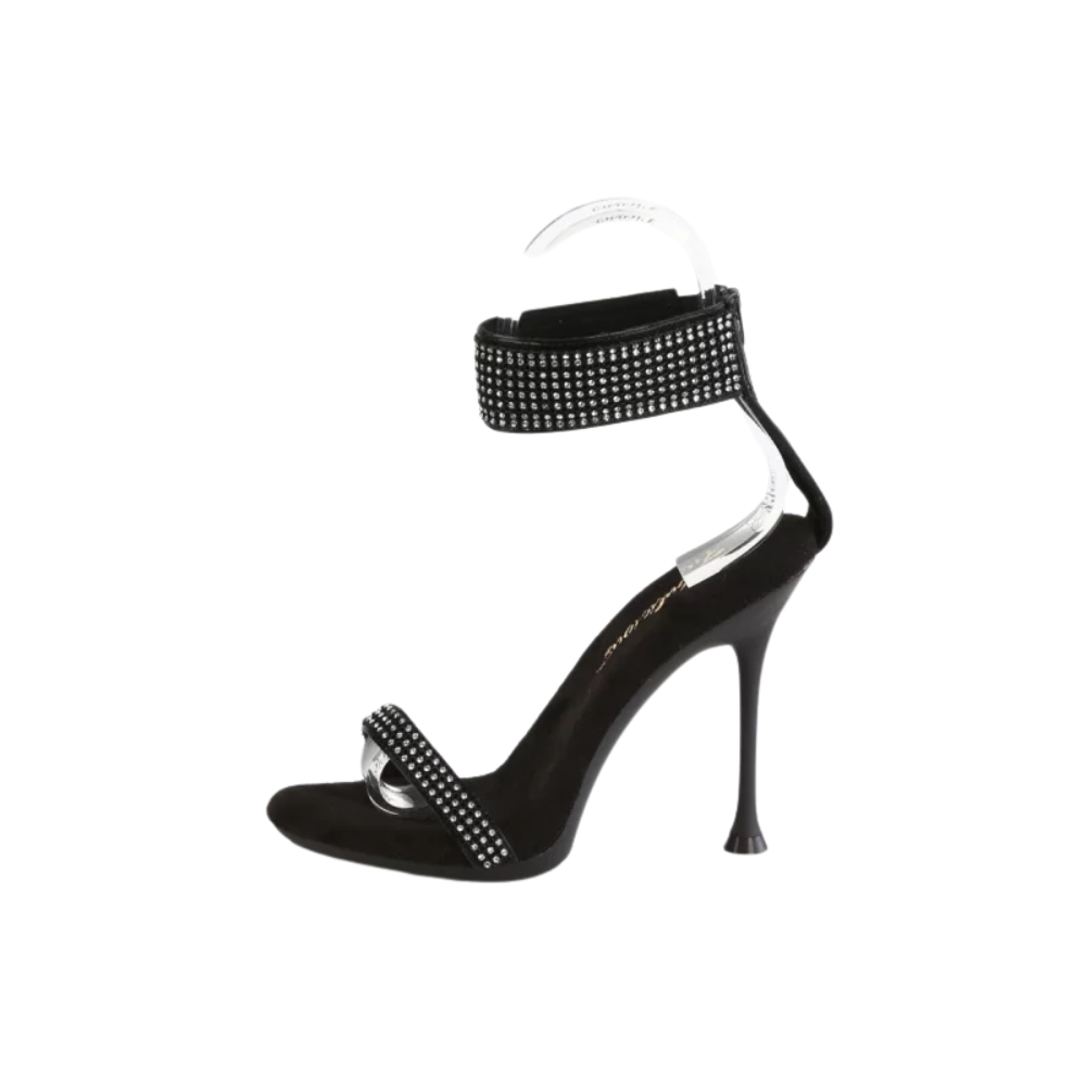 • Rhinestone Embellishment on Thin Over-The-Toe Strap & Wide Ankle Cuff