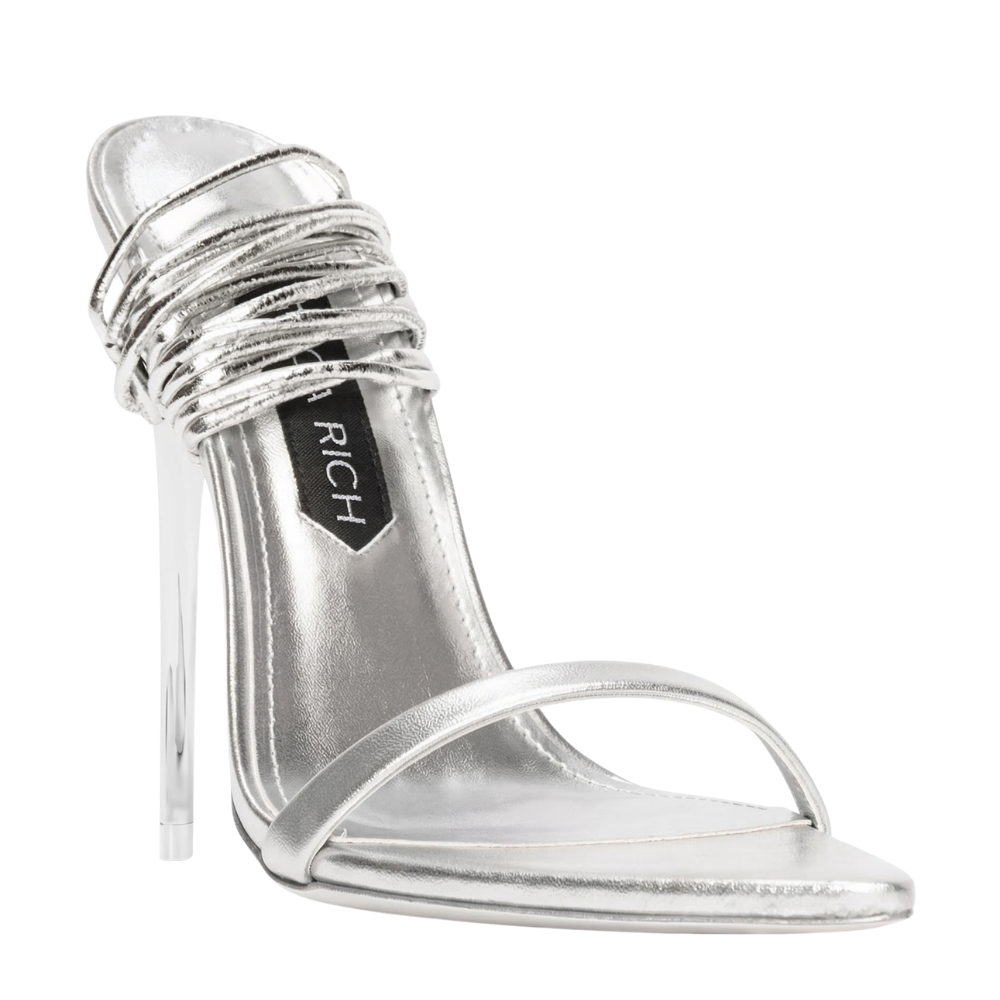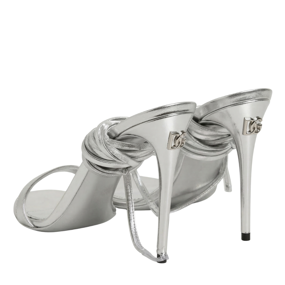 These sandals are crafted in silver leather and designed with an ankle strap silhouette. Suitable for evening or occasion wear they deliver shine and elegance with a streamlined profile. A refined sandal that complements formal and dress focused outfits.