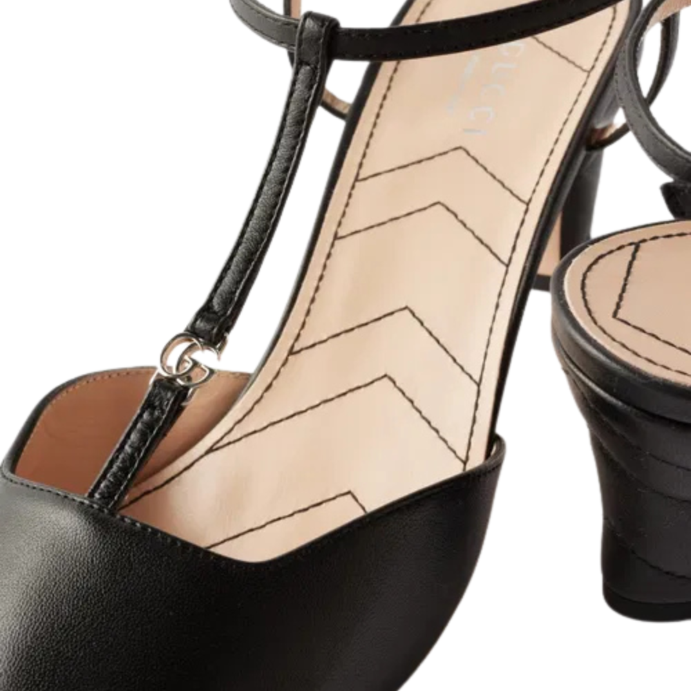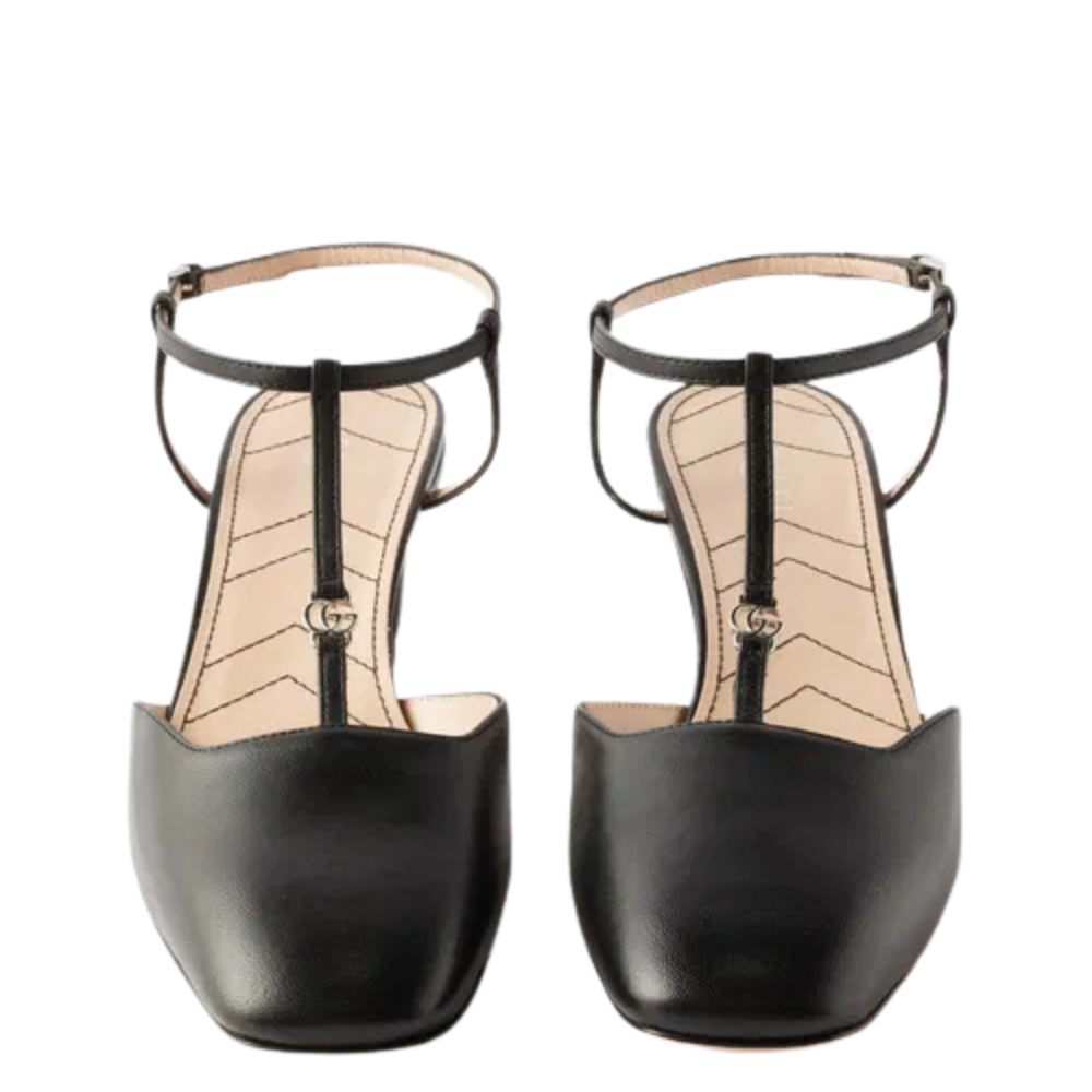Subtle stitching accents the heels of these black GG-Marmont leather slingback pumps, echoing the signature quilting seen throughout Gucci’s accessories collection