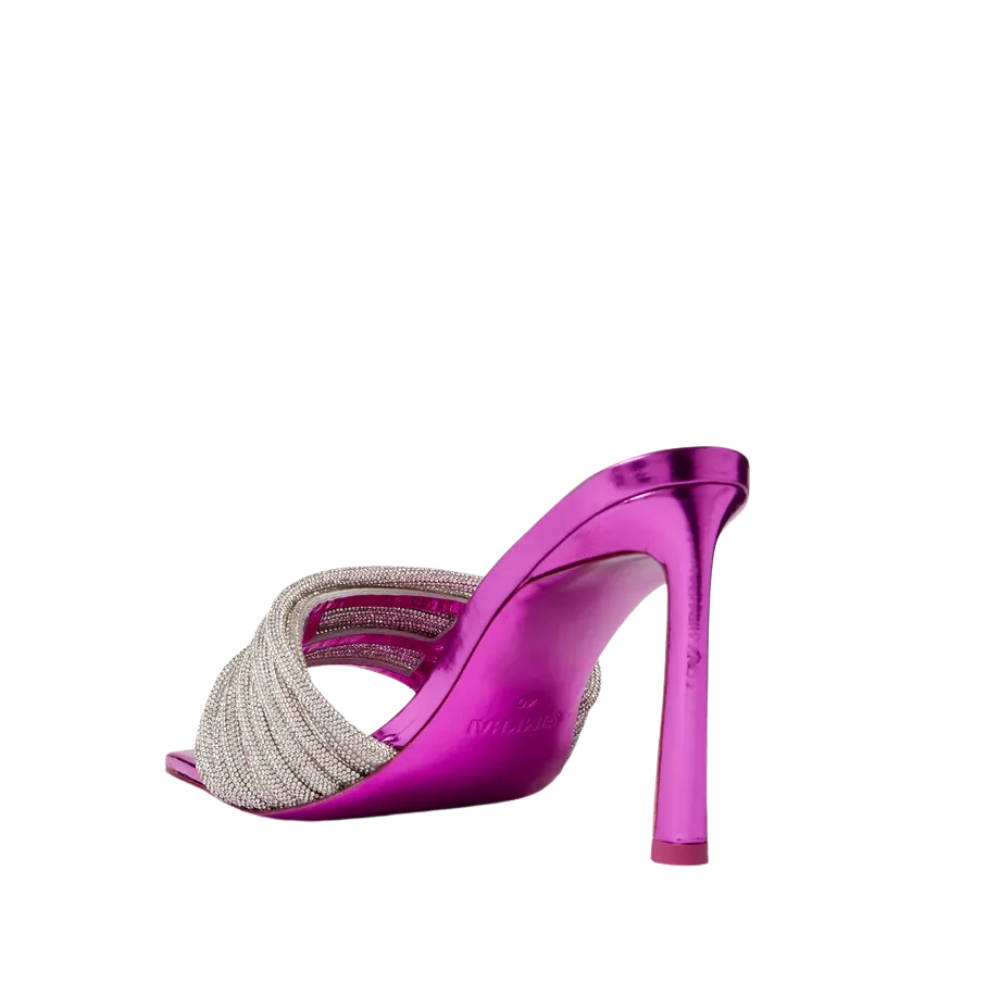 Crafted from high-quality leather, these mules offer a refined and polished look. The smooth and supple leather construction ensures a comfortable fit, while the attention-grabbing crystal strap adds a touch of glamour and sophistication.